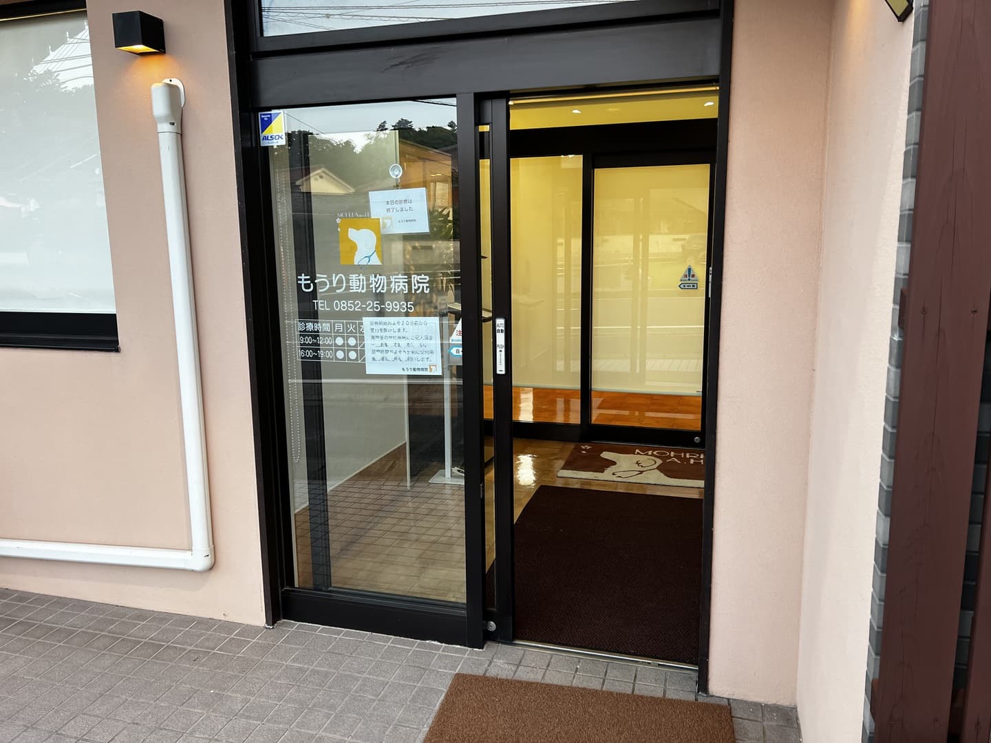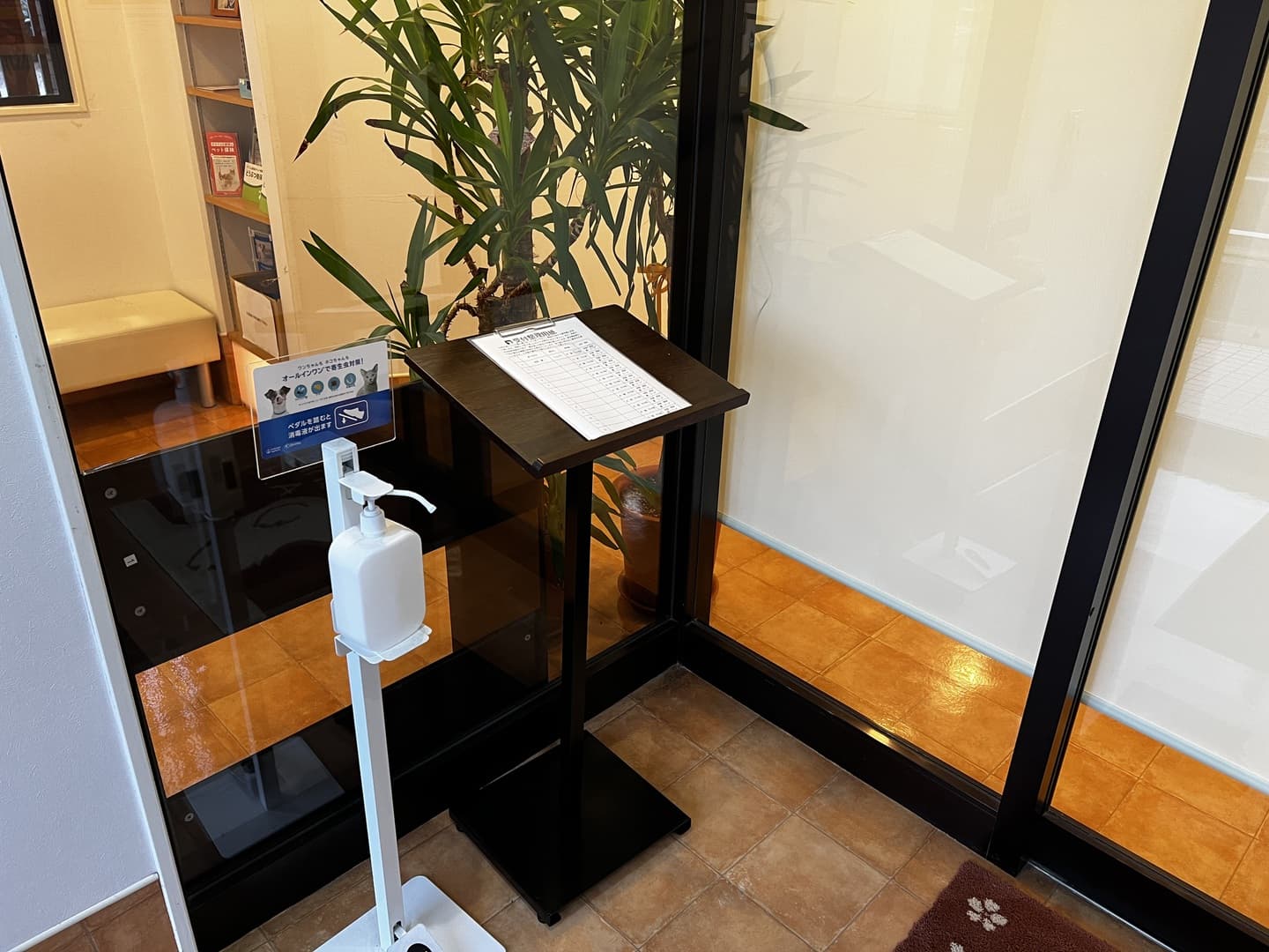 ①診療時間およそ20分前に風除室を開放しますので、外側の自動ドアの内側にお入り頂けます。