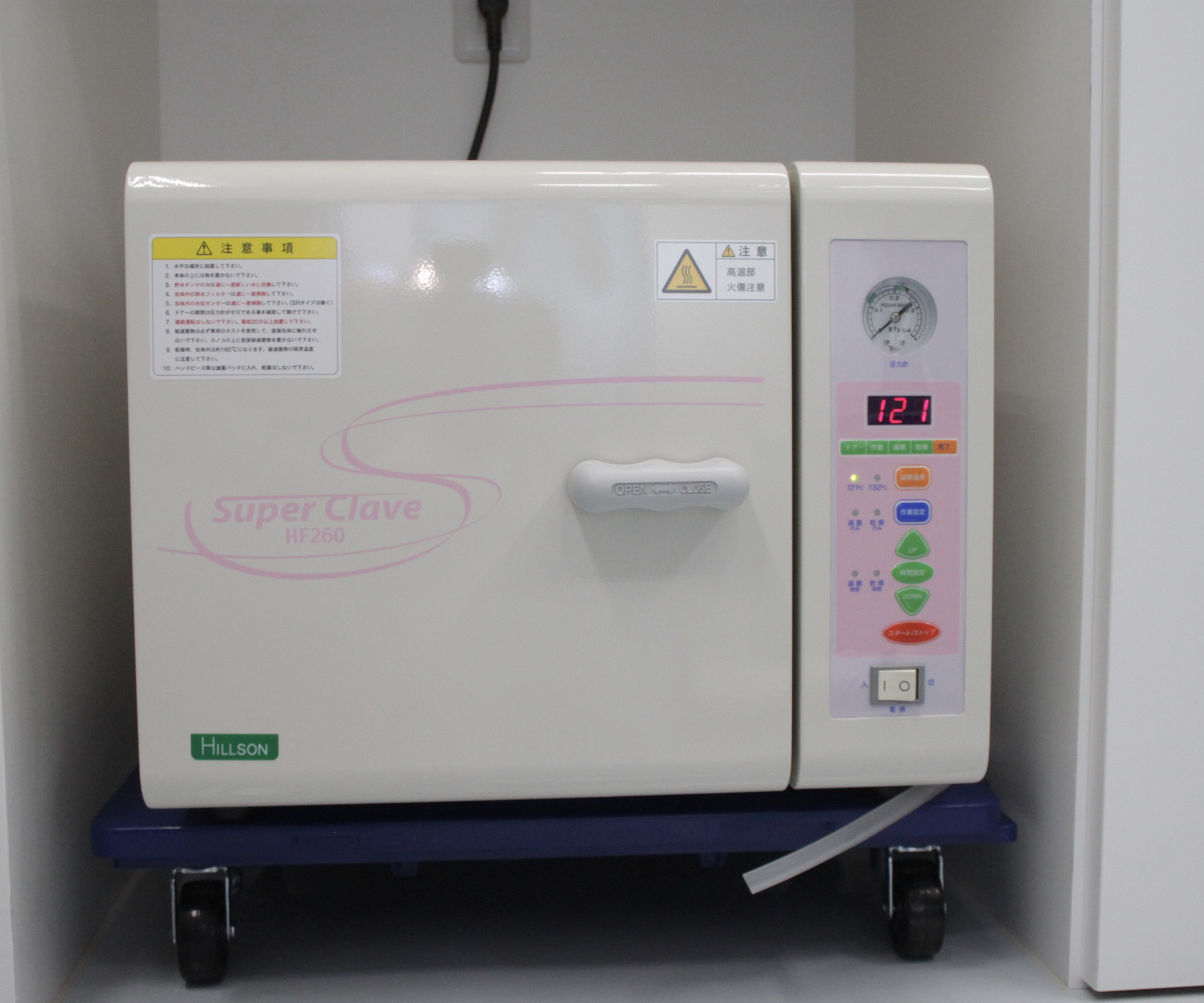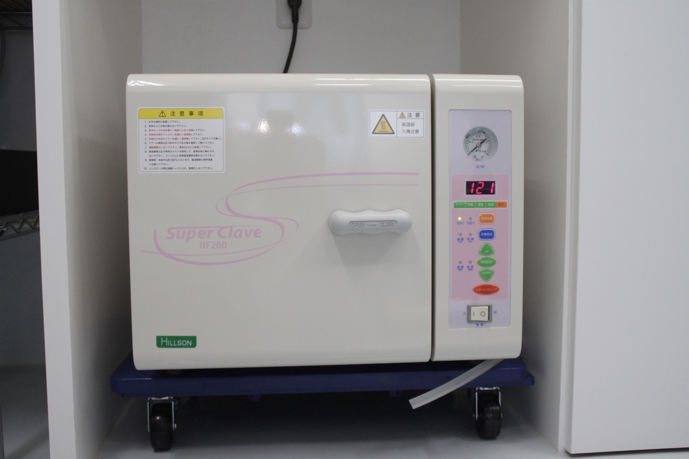 熱に弱く高圧蒸気滅菌の出来ない機器を滅菌します。ホルマリンは有毒な物質ですが滅菌後に完全に中和されますので従来使用されてきたガス滅菌に比較して安全性が高く医療従事者が安全に仕事をすることが出来ます。この機器の存在によって感染の危険を減少させ、安全な治療を行うことができます。