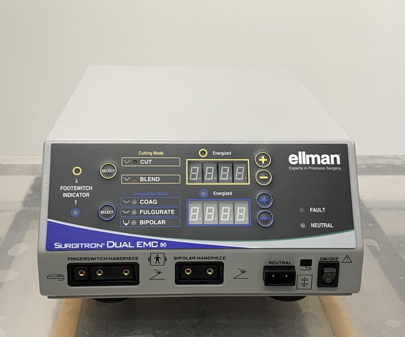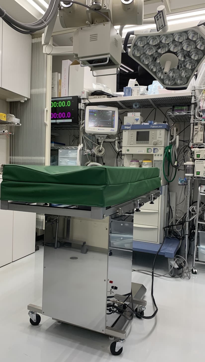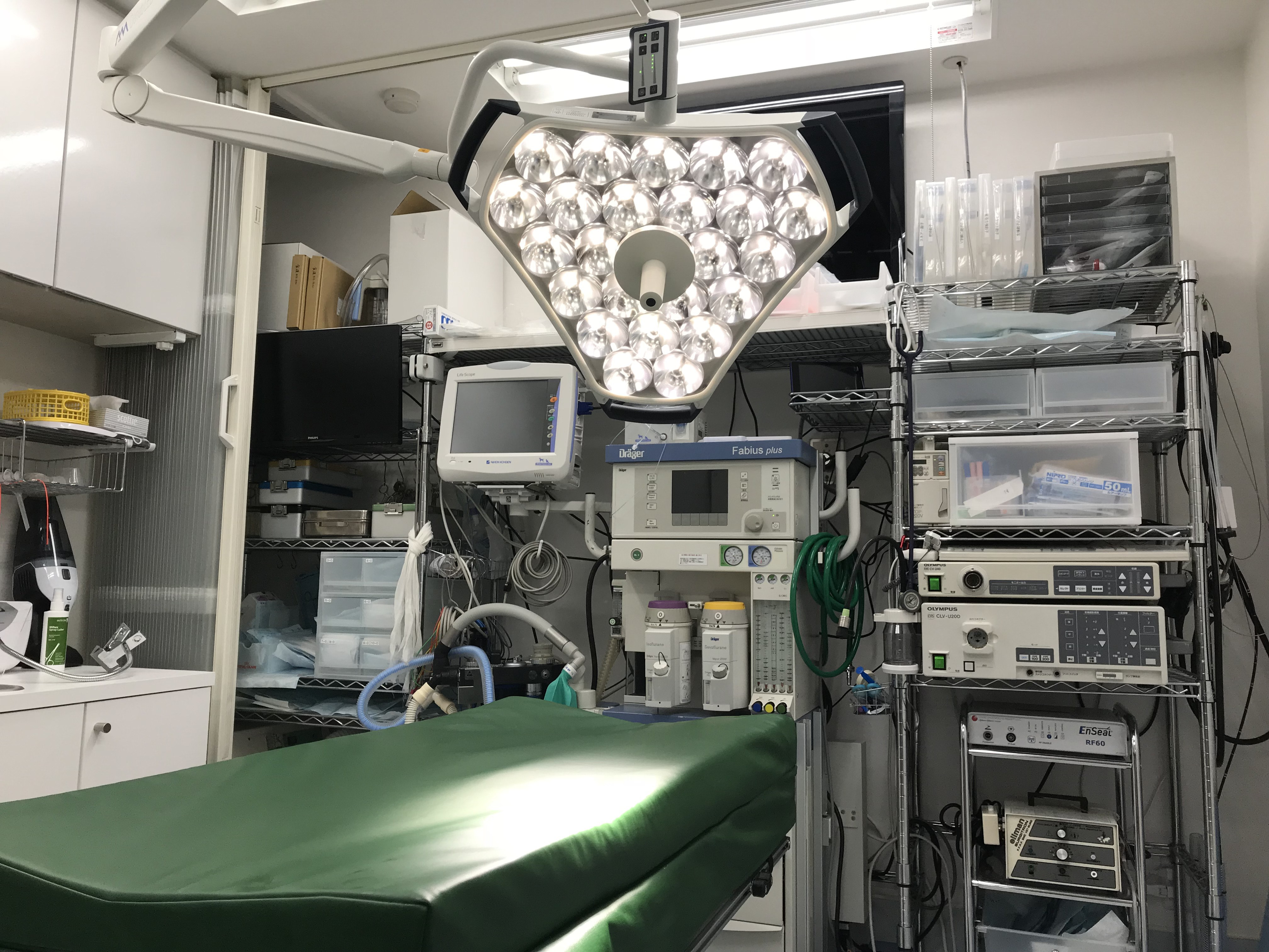 エルマンの電気メスは通常の電気メスの周波数(0.5MHz)よりも高いラジオ波と呼ばれる高周波(3.8MHz)を用いることが特徴で、白く煮えたような確実な止血力と皮膚切開も可能な繊細な外科手術を可能とします。この機器を使用した手術は特にラジオサージェリーと呼ばれることがあります。2019年に同メーカーの旧型から新調しました。