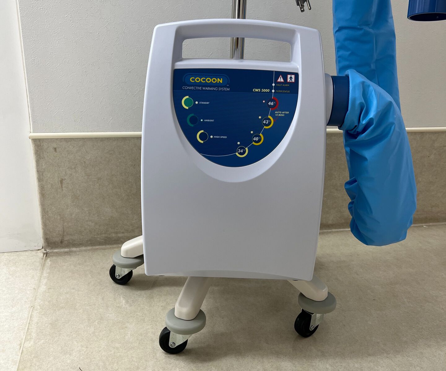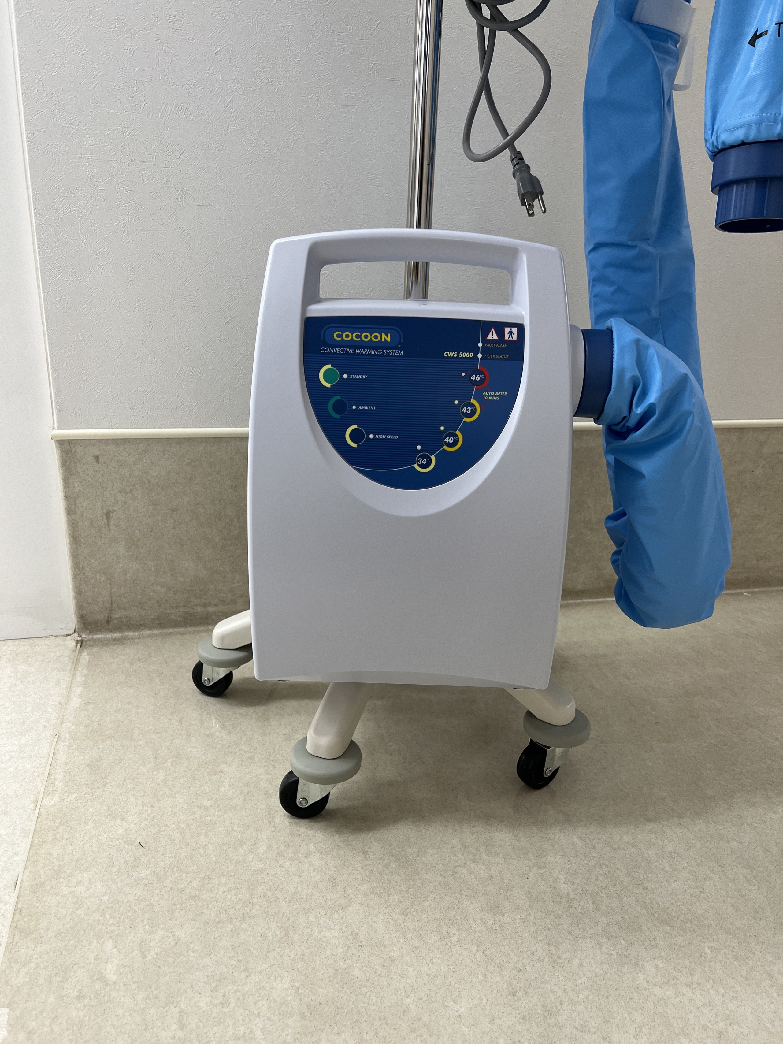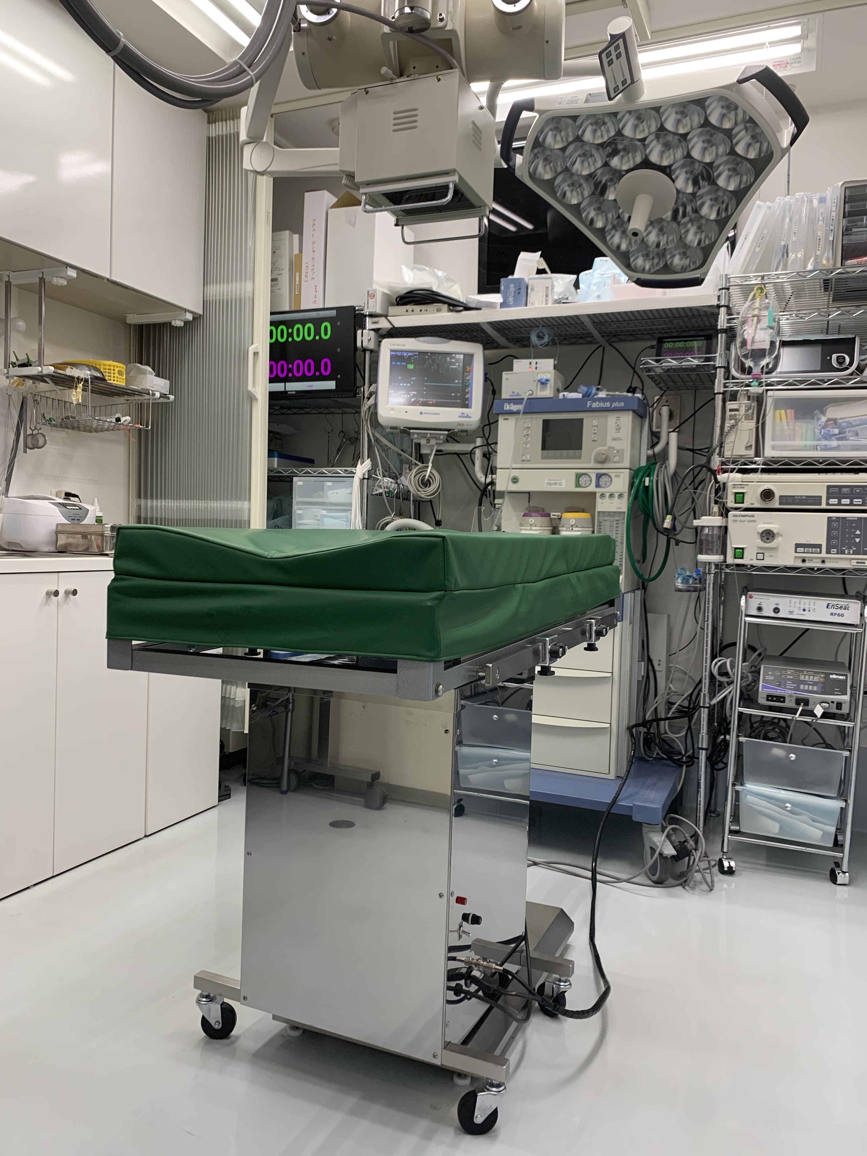 厳密にコントロールされた温風を動物の下のマットに循環させて術中術後の体温低下を防ぎます。麻酔時の低体温は麻酔覚醒の不良や術後の感染症の原因となるため、おおよそ全ての手術において使用します。2023年に先代の機械から刷新しました。