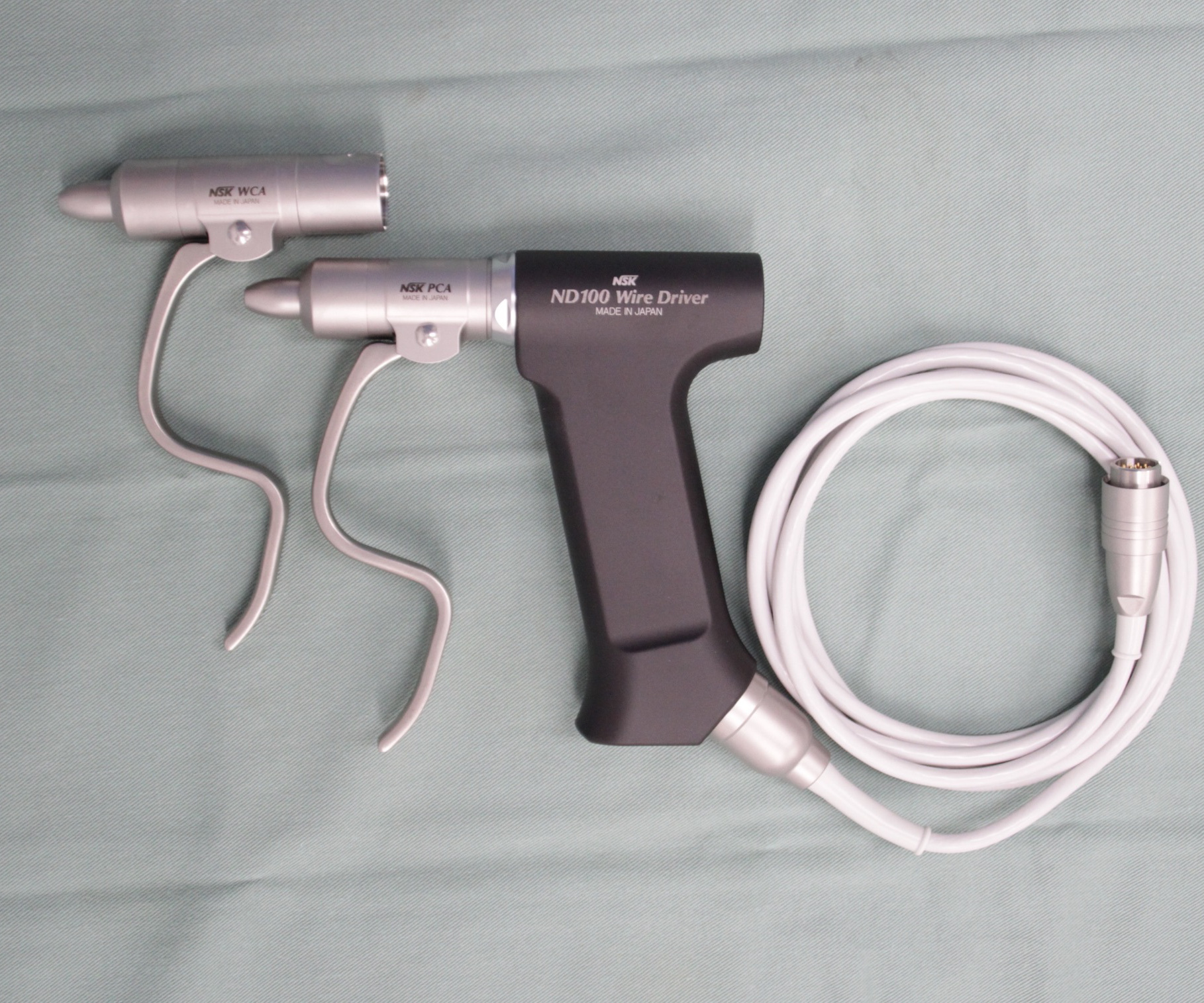 通常のラウンドバーに加えて歯科処置専用のハンドピースを採用しています。椎間板ヘルニアなどの骨を削る手術や、スケーリングの後の歯の研磨やフッ素コーティング、歯周病の為に抜歯が必要な歯の切断などに効果を発揮します。