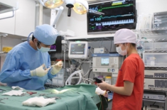 全身麻酔の危険性は海外のデータでは犬猫が2000頭に1頭亡くなると言われているのに対してウサギは100頭に2頭と言われています。当院ではウサギも内視鏡を用いて気管挿管を行いますが体が小さい場合などはウサギ専用の喉頭マスクを使用し術中に血圧や二酸化炭素濃度、麻酔ガス濃度、酸素飽和度など犬や猫と遜色ないモニターを行うことが出来ます。呼吸停止の際には調節呼吸もできますので、成績は幸いな事にそれよりもはるかに良好です。それでもウサギは犬や猫に比べて心臓や肺の能力が低い為に麻酔の危険性が高いのは確かです。しかしながら、女の子のウサギにおける子宮疾患の発生率の高さと避妊手術の安全性を天秤にかけると、手術を受ける事をお勧めせざるを得ません。