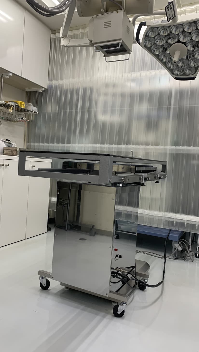 厳密にコントロールされた温風を動物の下のマットに循環させて術中術後の体温低下を防ぎます。麻酔時の低体温は麻酔覚醒の不良や術後の感染症の原因となるため、おおよそ全ての手術において使用します。2023年に先代の機械から刷新しました。