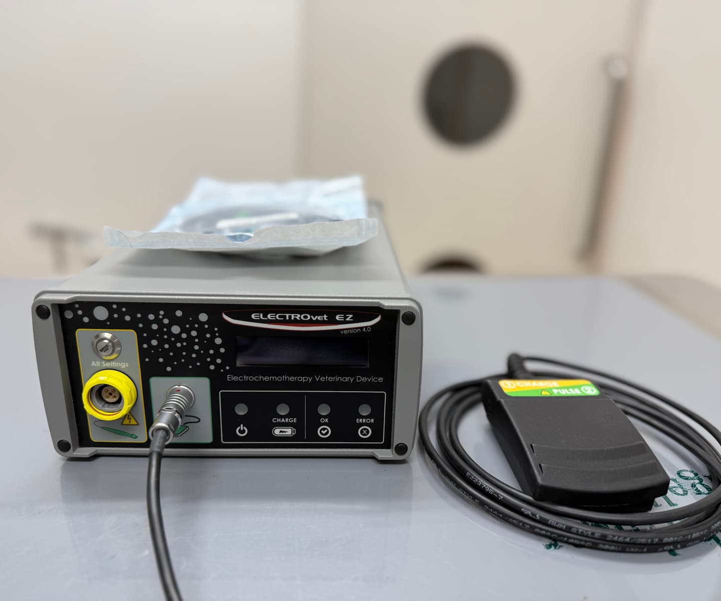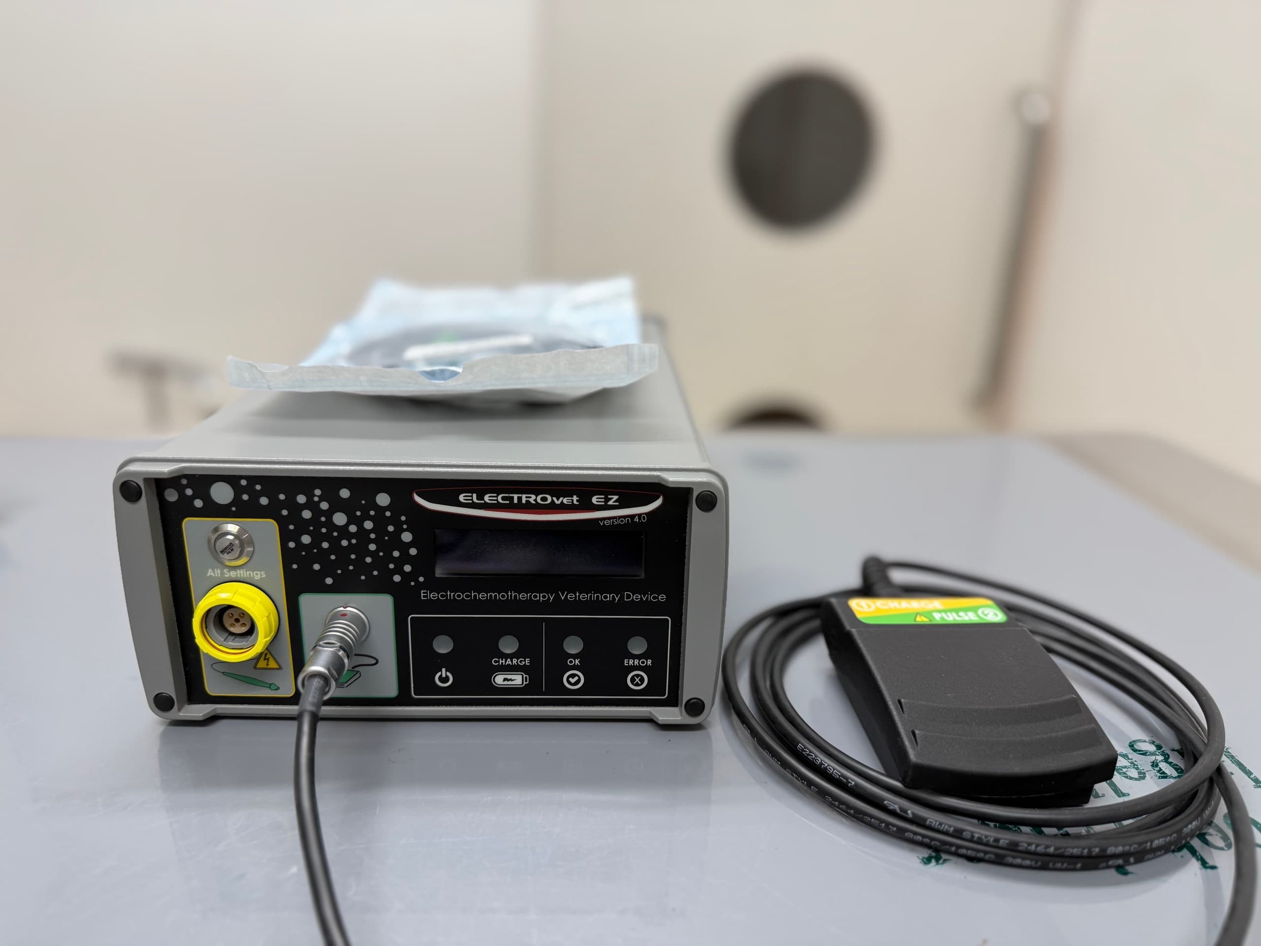 電気化学療法はがんの局所療法として日本の動物病院に急速に普及している治療法です。抗がん剤投与と組み合わせて使用し、腫瘍やその周辺に電極を刺してパルス電圧をかけることでがん細胞の抗がん剤の取り込みが飛躍的に高まり効果を発揮します。2026年1月に導入しました。